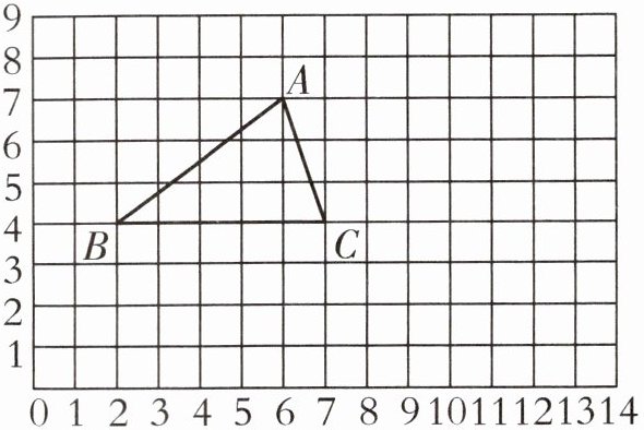 例 先写出三角形 ABC 各顶点的位置,再画出三角形 ABC 向左平移 5 格后得到的新三角形 A'B'C',并用数对表示出新三角形的三个顶点的位置。