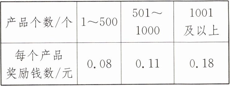 |每个产品奖励钱数/元|0.08|0.11|0.18|
