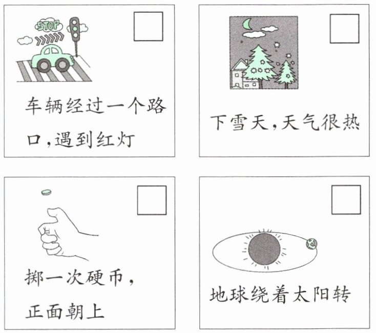 1. 下面的事件,一定发生的在□里画“√”,可能发生的在□里画“○”,不可能发生的在□里画“△”。