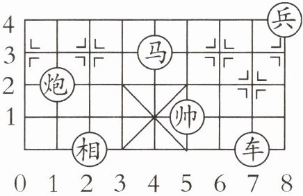 4. 传统文化 象棋规则 如下图,这是中国象棋的一部分,若“帅”的位置是(5,1),则“马”的位置是(