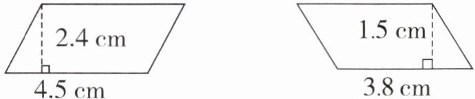 [提示]大平行四边形的底是小平行四边形的2倍,高相等,故大平行四边形的面积是小平行四边形面积的2倍。