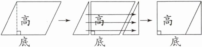 1. 如图,将平行四边形沿高剪开,把三角形部分向右平移,可以拼成一个长方形。