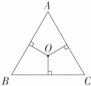 2. 如右下图,三角形ABC的周长是30 cm,三角形内一点O到三角形三条边的距离都是3 cm,求三角形ABC的面积。