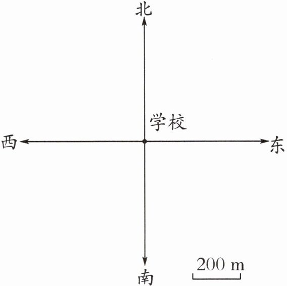 (3)书店在学校南偏西$45^{\circ}$方向200 m处。