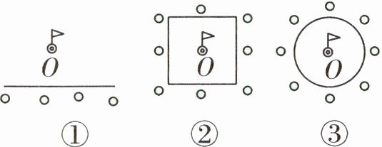 5. 同学们参加趣味套圈游戏,要想套中点 O 处的红旗,下面第几种设计最公平?为什么?