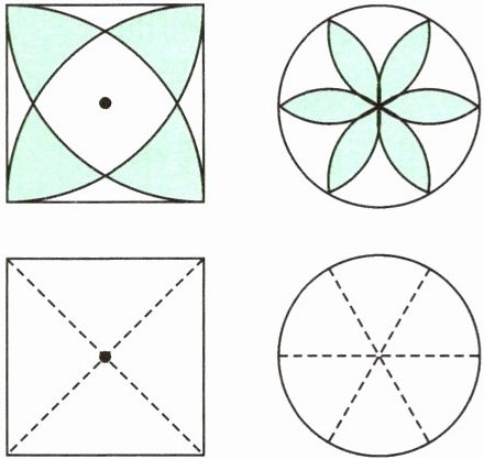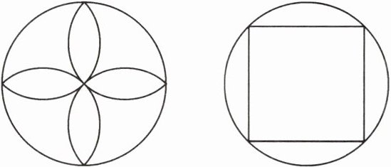(2)在下面的两个图中用圆规绘出上面两个美丽的图案。