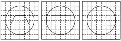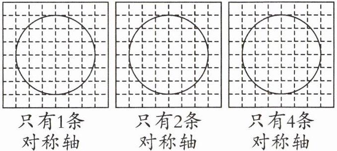 3. 圆是一个轴对称图形,它和平面图形组合在一起,可以形成新的轴对称图形。请在下面三个图形中分别再画一个平面图形,使新的组合图形满足题目的要求。