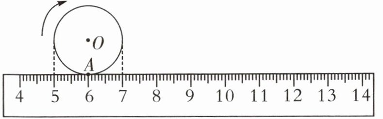 3. 如图,圆从点A开始沿着直尺向右滚动一周到达点B,请用↓标出点B的位置。