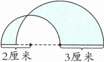 【提示】涂色部分的周长等于半径为2厘米和半径为3厘米的两个圆的周长的一半加上两条线段的长。