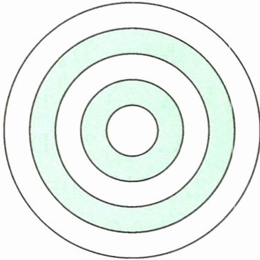 3. 跨学科 射击 射击比赛的靶子是由10个同心圆组成的(如图)。已知这个靶子上面每两个相邻的同心圆半径之差都等于最里面小圆的半径。最里面的小圆叫作10环,最外面的圆环叫作1环。你能算出10环面积是1环面积的几分之几吗?
