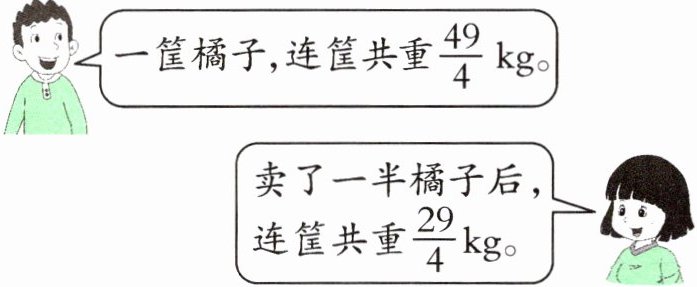 【提示】用原来橘子和筐的总质量减去卖了一半橘子后橘子和筐的总质量,得到原来橘子质量的一半,进而算出原来橘子的质量和筐的质量。