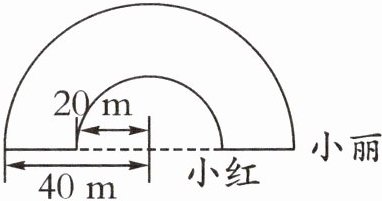 【提示】小红沿半径是20米的半圆跑,小丽沿半径是40米的半圆跑,她们跑的路程差也就是半径为40米和半径为20米的圆周长的一半的差。
