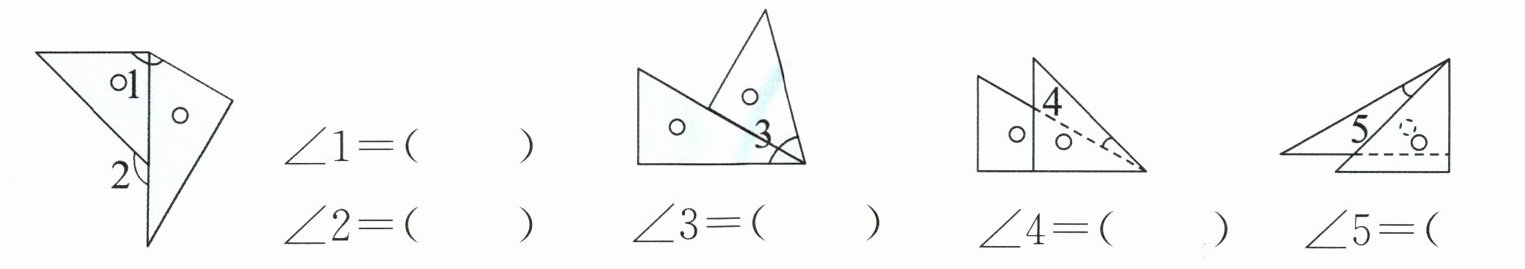 3. 下面是用一副三角尺拼出的角,它们分别是多少度? 填一填。