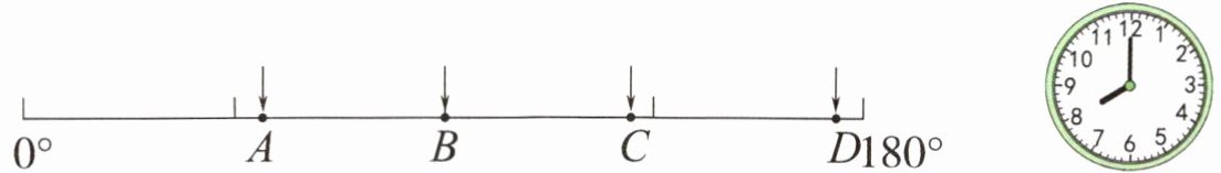3. 如果下面线段表示的是0°到180°,那么钟面上时针和分针所形成的角的度数接近线段上(