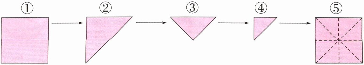 2. 如图,把一张正方形纸对折三次,打开后如图⑤所示,你能在图⑤中标出135°的角吗?(标出4个)