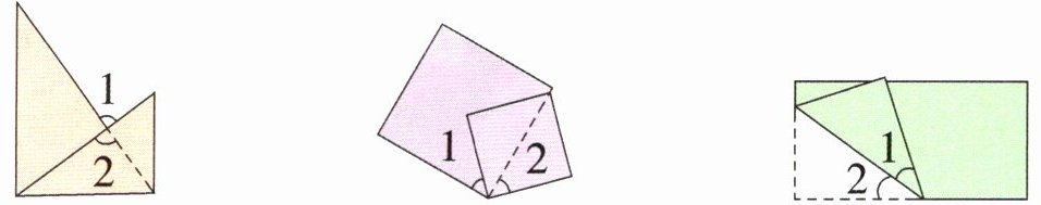 解析:第一幅图,两个角加上同一个角的和是$90^\circ$,所以$\angle1=\angle2$;