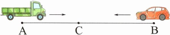 7. (模型意识)一辆货车和一辆轿车分别同时从 A、B 两地出发,相向而行(如图),4 小时后两车在 C 地相遇,然后两车继续各自向前行驶,3 小时后轿车到达 A 地。已知货车每小时行驶 60 km,A、B 两地相距多少千米?
