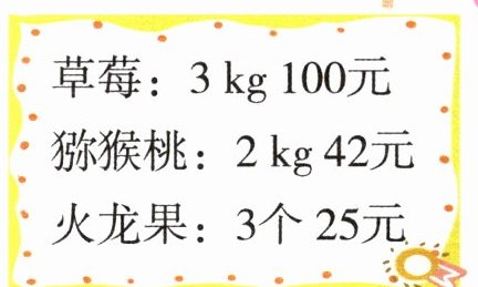 5. (应用意识)爸爸买了4 kg猕猴桃、3个火龙果和6 kg草莓,一共花了(
