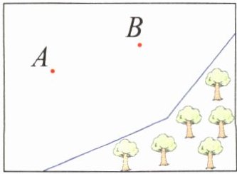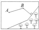 4. 奇奇在A处发现了一只受伤的梅花鹿,要把它送到B处的救助站治疗,然后送回森林。请你帮奇奇设计一条最短的路线,并画出来。