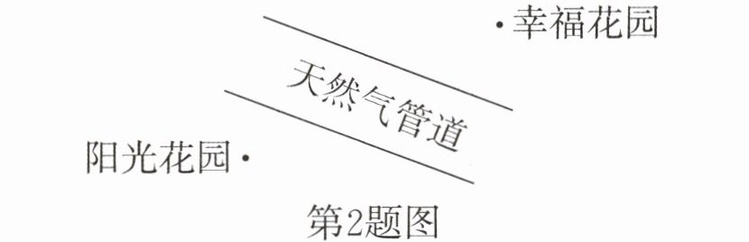 2. 如图,幸福花园和阳光花园的居民准备安装天然气管道,为了节省安装费用,你能帮助他们设计出安装管道的路线吗? 画线表示管道路线。