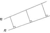 如图,在直线m上任选几个点,分别向直线n画垂直线段,这些垂直线段的长度不相等 不是