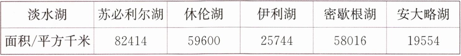 1.请你把世界五大淡水湖的面积按从大到小的顺序排列起来。