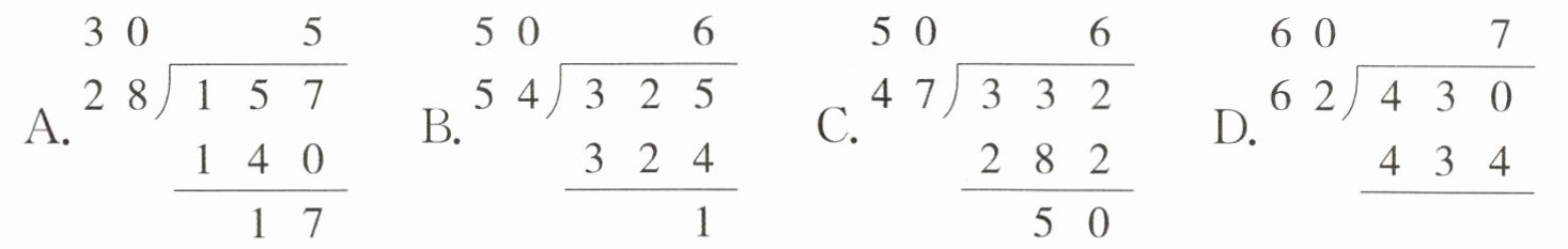 4. 红红说:“如果将除数往大看,那么商可能会小。”下面选项