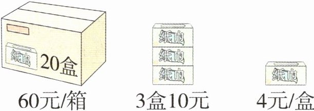 5. (教材改编)下面是同一种盒装纸巾的价钱。一家宾馆要买37盒这种纸巾,怎样买最省钱?