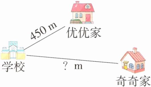 1. 奇奇每分钟走 69 m,优优每分钟走 75 m,优优家距离学校 450 m。奇奇上学比优优要多走 7 分钟。奇奇家距离学校多少米?