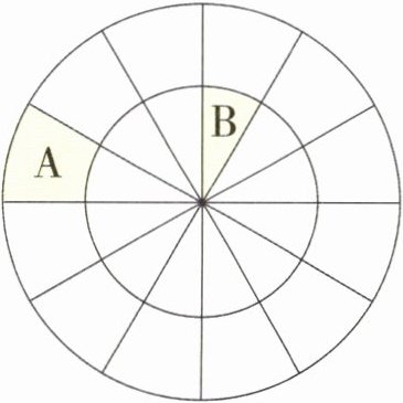 3. 阳光小学举行爱心义卖活动,学校对义卖场地安排如右图:整个义卖区域是个圆形,总面积为$768m^{2}$,内圈和外圈分别被平分成了 12 个部分,涂色部分 A 场地是四(1)班的区域,B 场地是四(2)班的区域,你知道四(1)班和四(2)班共有多少平方米吗?(提示:可以先在图上画一画,再列式计算解决问题)