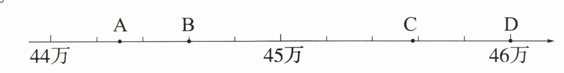 (2)(几何直观)一个数“四舍五入”后得到45万,这个数在下图中的位置可能是(