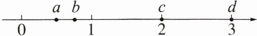 4. (数形结合)下图中有$a、b、c、d$四个数,有可能互为倒数的两个数是(