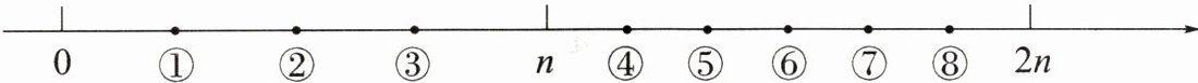 4. 下图中共有8个小圆点,根据$n的位置判断n×\frac{3}{4}$的位置大致在(