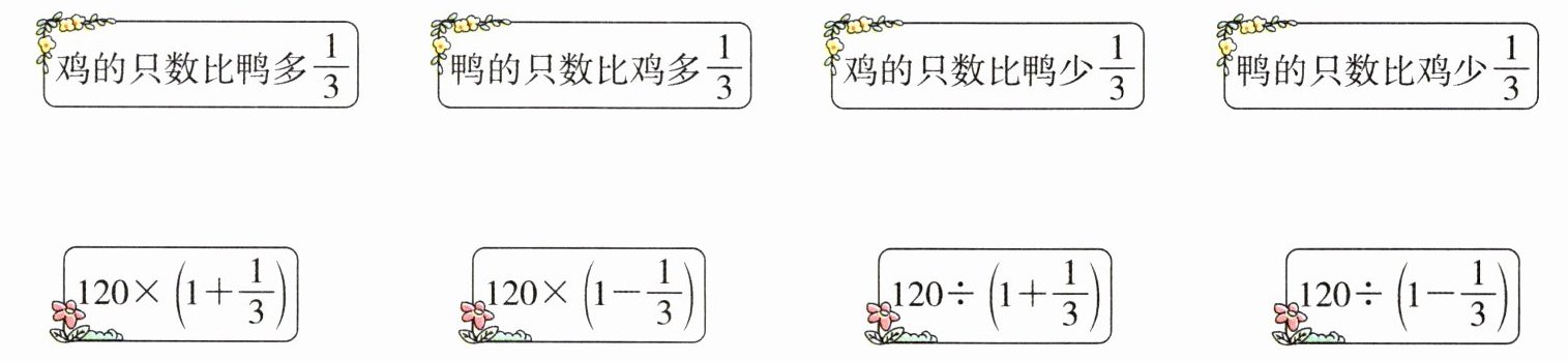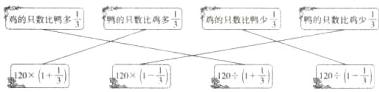 1. 养殖场养鸡 120 只,______,养鸭多少只?(把补充的条件与算式连起来)