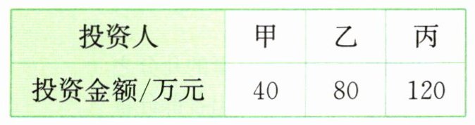 4. 甲、乙、丙三人合资创办了一家公司,各自的投资金额如下表,五年后共获利360万元。你认为怎样分配利润比较合适?按你的分配方式,三人各应得多少万元?
