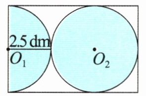 5. 如图,在一张长方形铁皮上剪下一个小长方形(里面有两个半径为4 cm的圆)后,正好还剩下一个正方形。求原长方形铁皮的周长。