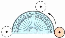 )是向右滚动一周后M点的位置。(直线上每段长度为1 cm)(2)如图,把一支铅笔垂直插入一个半径为1 cm的圆形硬纸板的圆心,然后绕一个直径为8 cm的量角器的圆弧滚动,铅笔会留下痕迹,此痕迹的长是(