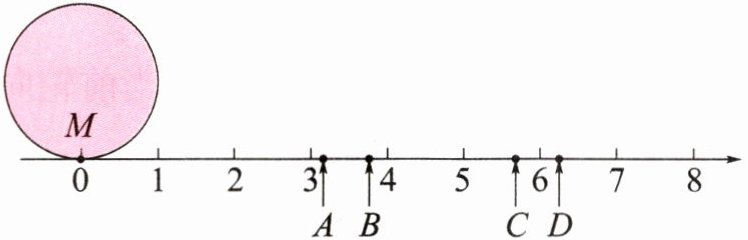 (1)下图中圆的半径是1 cm,现在以M点为起点,向右滚动一周,下面(