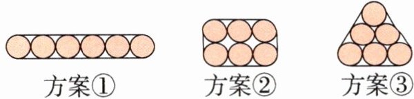 5.方案①:$3.14× 7+7× 10=91.98$(cm) 方案②:$3.14× 7+7× 6=63.98$(cm) 方案③:$3.14× 7+7× 6=63.98$(cm) $91.98>63.98$,选用方案②或③更节省胶带