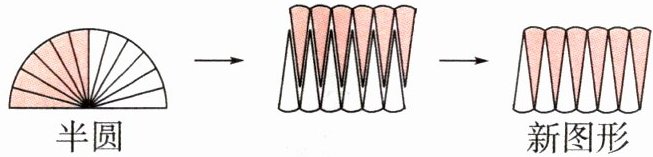 2. 把一个半圆平均分成若干偶数份,拼成一个新的图形(如图),半圆周长与这个新图形的周长相比,(
