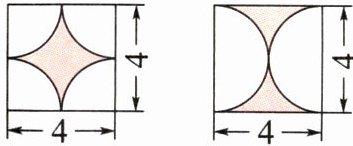 3. 下面两个图形中涂色部分的周长和面积的大小关系是(