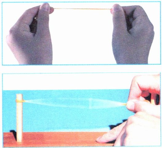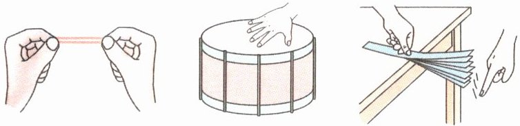 ②利用橡皮筋研究声音是怎样产生的:拉伸、按压、揉搓橡皮筋时,橡皮筋受力变形但没有振动,