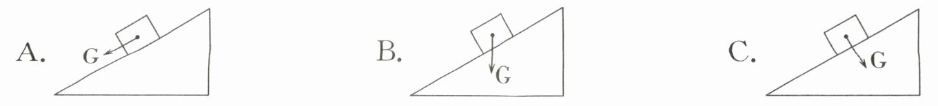 根据以上信息,一个物体放在斜面上,下列标出的该物体受到的重力方向正确的是(