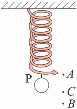 7. 如图是一个无刻度的弹簧,最大可以挂重10N的物体,明明想用该弹簧测一个物体的重力,他先把弹簧上端固定,静止时指针P指向A点,在弹簧下端挂上重5N的物体,静止时指针P指向B点。