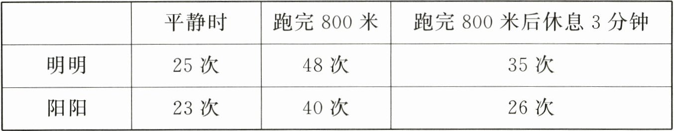 2. 下表是明明和阳阳两名同学在不同情况下每分钟的呼吸次数,请据此回答问题。