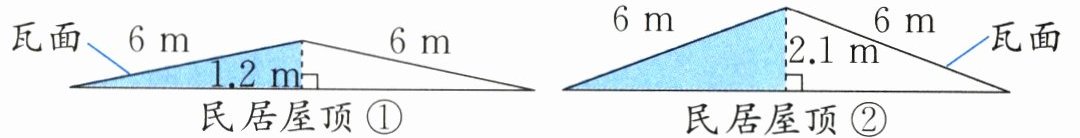 1. 民居屋顶①的高度与一边瓦面长度的最简单的整数比是( );民居屋顶②的高度与一边瓦面长度的最简单的整数比是( )。(2分)