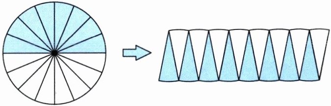5. 把一个圆分成若干等份后剪开,再拼成一个近似的长方形,两个图形相比,(