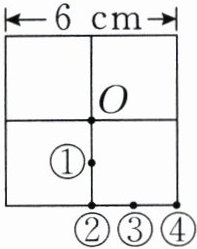 4. 在边长为6 cm的正方形纸上,用圆规画一个尽可能大的圆。如果圆规的针尖在点O处,那么笔尖应该打开到(