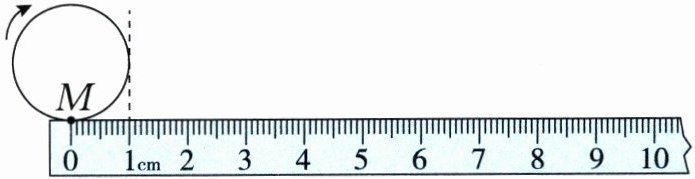 3. 如图,M是圆上一点,这个圆向右滚动一周后,点M的位置在(