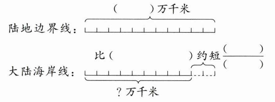 (2)$1.8-1.8×\frac{7}{9}=0.4$(万千米) 答:我国大陆海岸线比岛屿岸线约长0.4万千米。